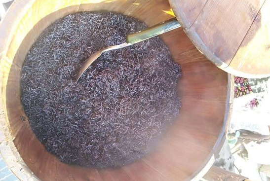 每年农历四月初八日,是侗族中的杨姓人家的黑饭节。这天,侗族姑娘相约上山,采摘乌树叶,洗干净后把它舂烂,放进盆子里浸泡出深篮色的水,过滤去渣,把白米放入水中浸泡,再倒入锅内煮熟,变成了黑米饭,然后备办酒肉,将出嫁的姑娘接回来,全家人围坐在餐桌上,大口地啃着黑麻麻的饭团,吃得津津有味。黑米饭不但清香可口,据说还能祛风败毒,延年益寿。